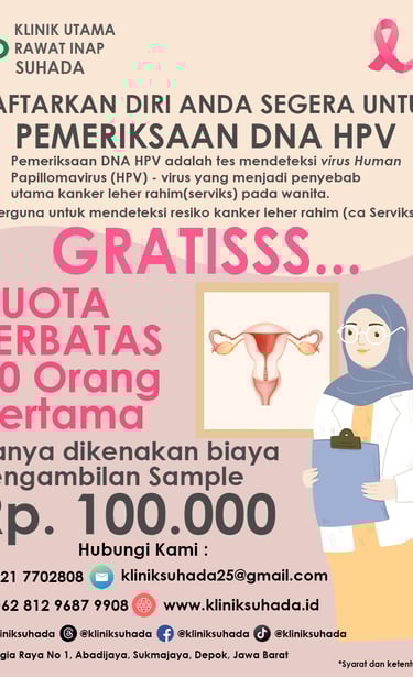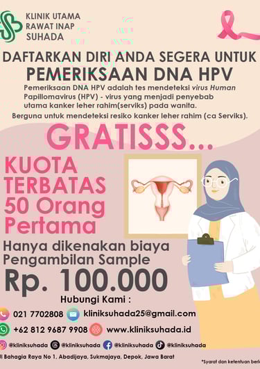 Puji Syukur Kami panjatkan kehadiran Tuhan Yang Maha Esa, Atas nama rahmat dan karunia - Nya, Klinik Utama Rawat Inap Suhada (KURI SUHADA) dapat berdiri dan beroperasional pada tahun 2026, sebagai salah satu fasilitas pelayanan kesehatan bagi masyarakat kota depok dan sekitarnya.
